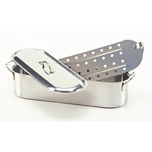 Large enough to poach a whole fish, this tool helps your food retain vitamins and keeps calorie counts low. Made of sturdy, durable stainless steel, it includes a perforated rack insert to drain and lift fish out in one piece, allowing you to elegantly present your dishes. Also ideal for cooking corn, asparagus, and other vegetable and side dishes. Measures 18in x 4.5in.