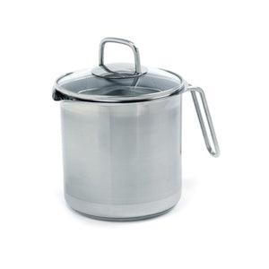 Boil, stew, simmer, and more with this versatile, multi-purpose pot! Made of durable, heavy duty stainless steel, this pot features a try-ply encapsulated base to seal in heat and increase cooking efficiency. Ideal for vegetables, pastas, stews, and one pot meals, this pot is also perfect for heating soup, milk and other sauces. Includes a lid to seal in or vent steam. Perfect for everyday use, this pot is an essential addition to your kitchen! Holds up to 12c/96oz. Hand washing recommended.