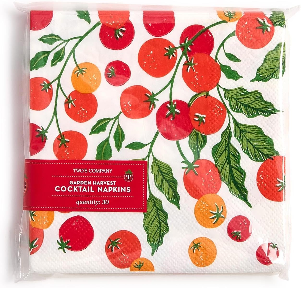 Two's Company Garden Harvest, 3-Ply Paper Cocktail Napkins, Set of 30, 5-inch Square, Multicolor, Tabletop Use